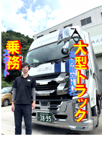 この度、高校を卒業後に入社した入江君が、見事に大型免許を取得し、大型トラック運転手としてデビューしました!大安では、新卒で大型トラックに乗務するのは初めての快挙です。